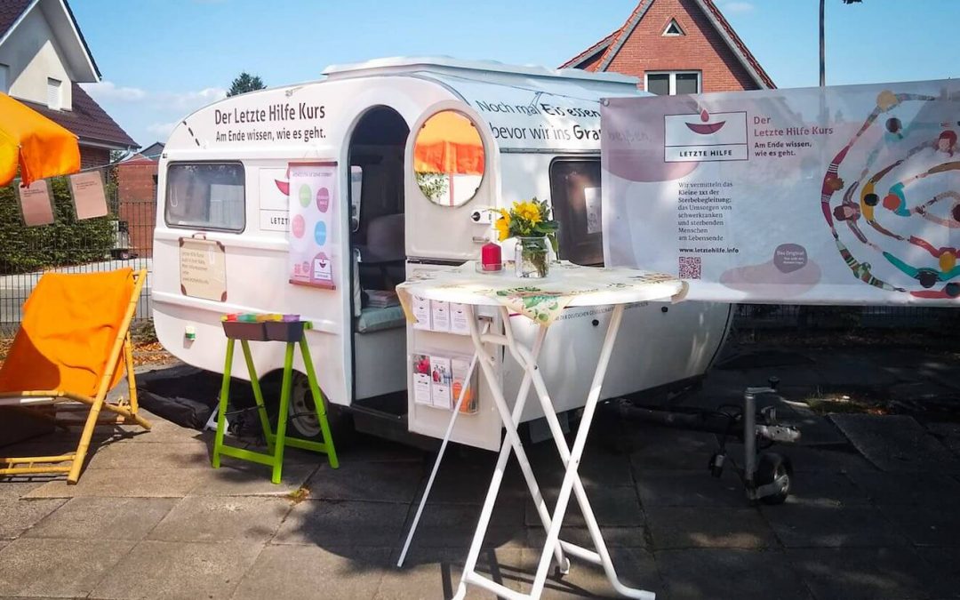 Auch der Ambulante Hospiz Oberhausen e.V. hat ausgebildete Kursleiter:innen im Team der Koordinator:innen. Gemeinsam mit der Organisation in Schleswig haben die Oberhausener nun den umgebauten Wohnwagen ins Revier geholt, wo er an mehreren Standorten Zeit und Raum für Infogespräche zur „Letzten Hilfe“ bietet.